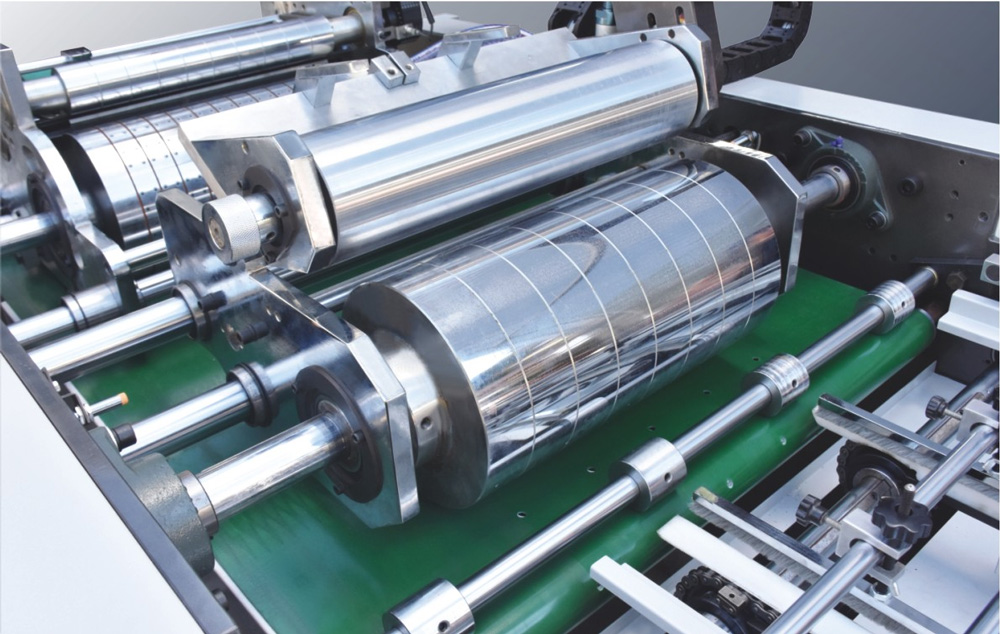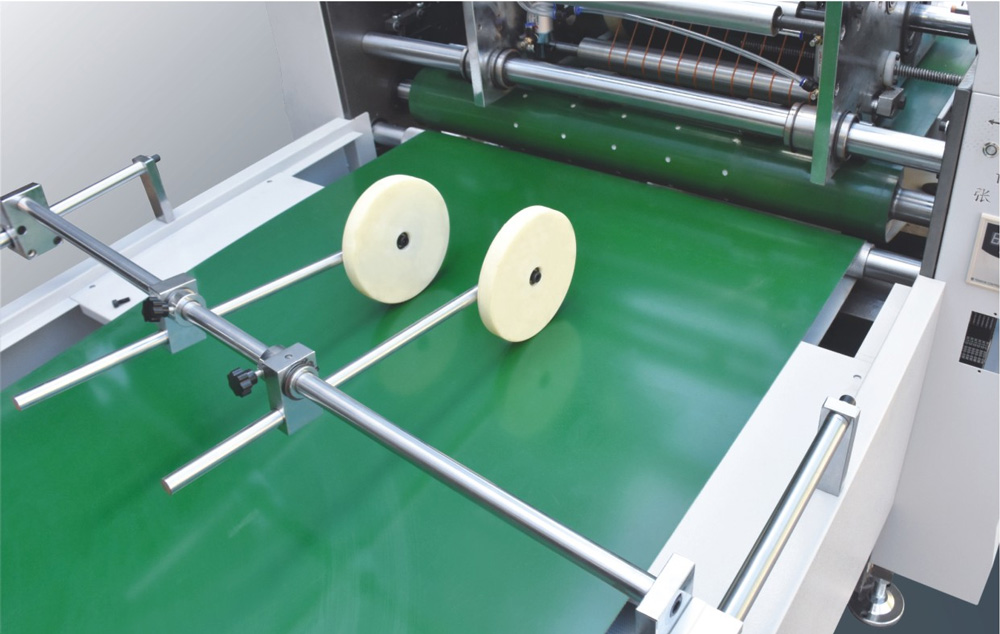 4、涂膠部:涂膠滾筒的橫向于縱向分別由伺服電機驅動,可不停機直接進行雙向調節,涂膠部還具備空張避膠功能,避免膠水接觸到皮帶,減少因為空張而頻繁停機清洗皮帶的麻煩。