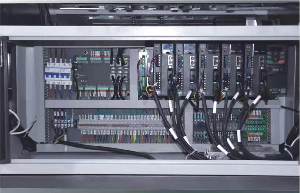 8、電氣系統:整機采用全伺服運動控制,各種電氣元件、檢測開關均采用日本、臺灣、法國、德國等公司產品。
